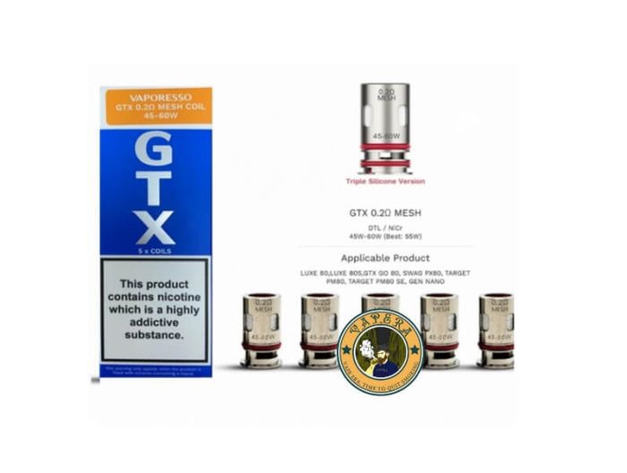 - GTX 0.2 OHM MESH COIL 45-60W TRIPLE SILICON PROTECTION